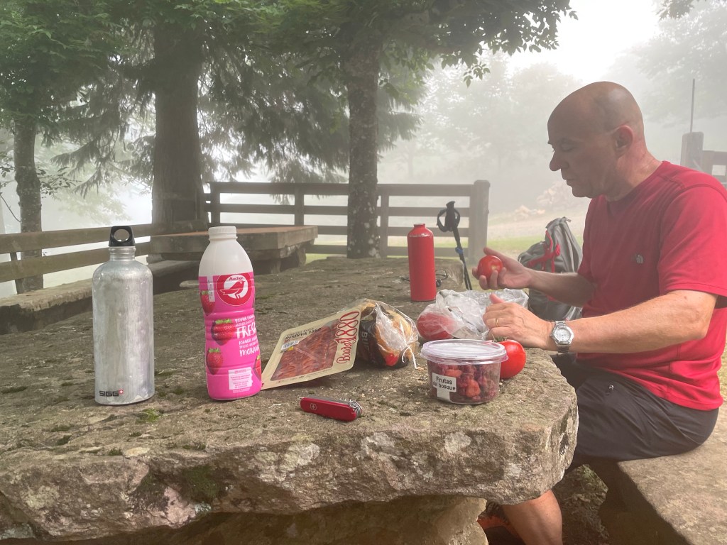 Above the clouds at 1000 m First day at 1000m along the French Spanish border. Had to walk through the clouds/mist which was really humid but on the top the breeze was lovely despite the temperature.