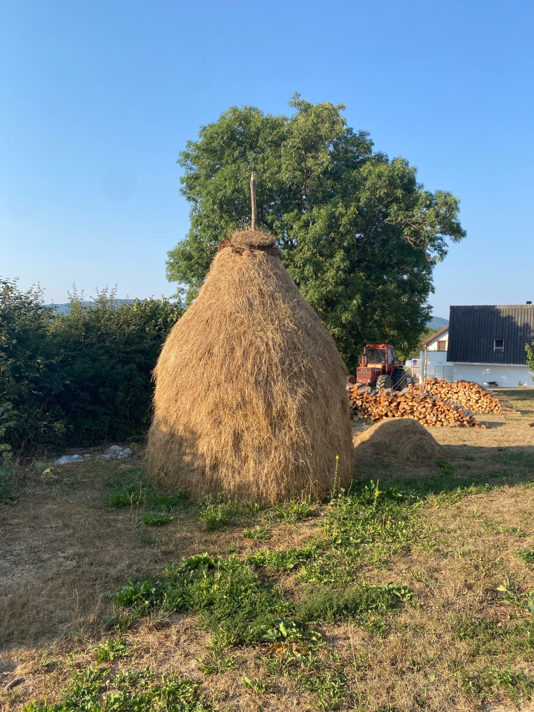 A much better temperature today – and with a welcome cool breeze at times, so happy days 😎… Two biggish climbs with a steep descent through the forest in between. Finished off with a trek into the sleepy village of Burguete, crossing over with the girls who walked the other way to check out the views from the top.